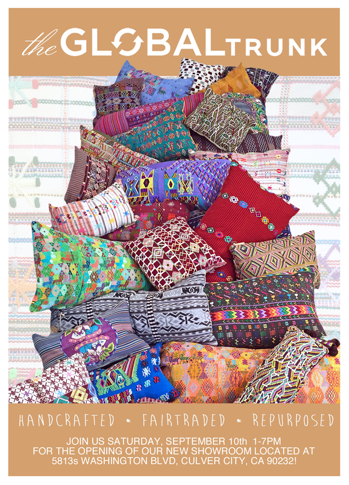 Global Styling has been a popular design trend for some time now, but repurposed, handcrafted, fair-trade products never lose their appeal. Our neighbor, Global Trunk, invites you to their Grand Opening celebration on Saturday, September 10th from 1 to 7PM, featuring Mayan weaving demos, food and refreshments.